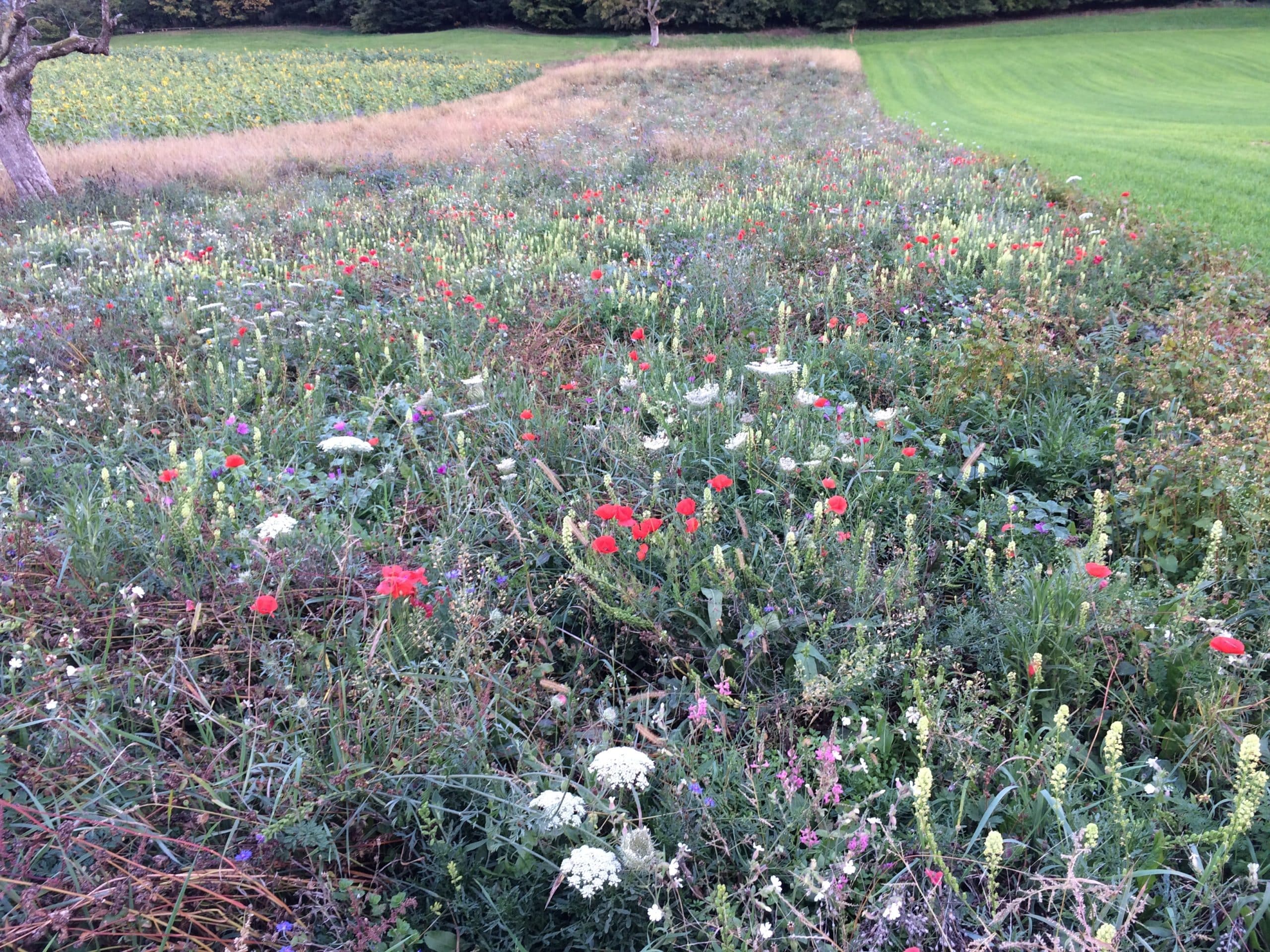 | Kosten und Finanzierung | • Saatgut: Fr. 2’200 – 2’900.-/ha • Saatbettbereitung, Ansaat und Pflegemassnahmen (ÖLN 8-jährig): Fr. 59.-/ha und Jahr • Pflanzenschutzmittel-Einsatz als Einzelstockbehandlung: Fr. 31.-/ha und Jahr Bestehende Förderbeiträge (Direktzahlungen DZV, Strukturverbesserungen SVV): Für Säume auf Ackerland jährliche BFF-Beiträge zwischen Fr. 33 und 43.–/Are (abgestuft QI, Vernetzung). |