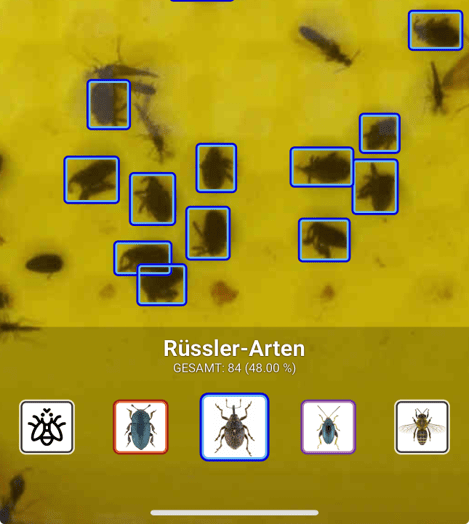 Je nach Witterungsverhältnissen macht die Kamera bis zu zwei Fotos von der Fangschale am Tag und sendet diese per Mobilfunkt an die Hersteller-App. In der App können die Bilder der Gelbschalen eingesehen und die Schädlingsanzahl überprüft werden. Der Algorithmus kann die Schädlinge automatisch erkennen und den Befall errechnen. Er kann auch von Beifang unterscheiden und wird laufend weitereintwickelt.