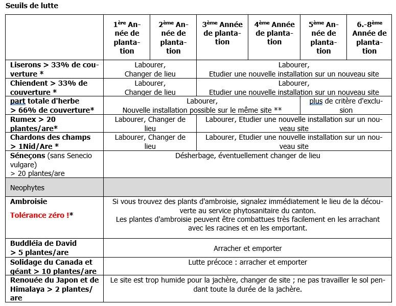 Les seuils de lutte peuvent être consultés dans l’actuel « Guide de la promotion de la biodiversité dans les exploitations agricoles » (AGRIDEA).