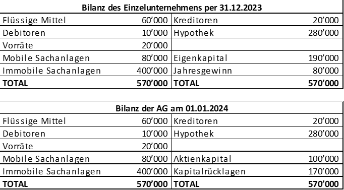 Umwandlung eines Einzelunternehmens in eine AG/GmbH und anschliessende vollständige oder teilweise Übernahme der Vermögenswerte: