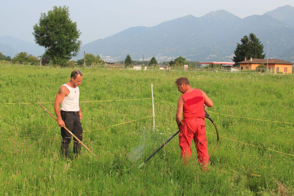 Nei prati è stato dimostrato che uno sfalcio molto frequente (>8 volte all’anno) durante un’intera stagione è la misura più efficace. Regimi di sfalcio meno frequenti (<4 volte all’anno) non sono sufficienti; al contrario, possono addirittura favorirne la crescita. Un classico regime di sfalcio (3-5 interventi), combinato con il taglio mirato dei ricacci tra uno sfalcio e l’altro, porta a lungo termine all’indebolimento dell’apparato radicale. Questo processo richiede tuttavia pazienza, e deve essere effettuato per diversi anni.