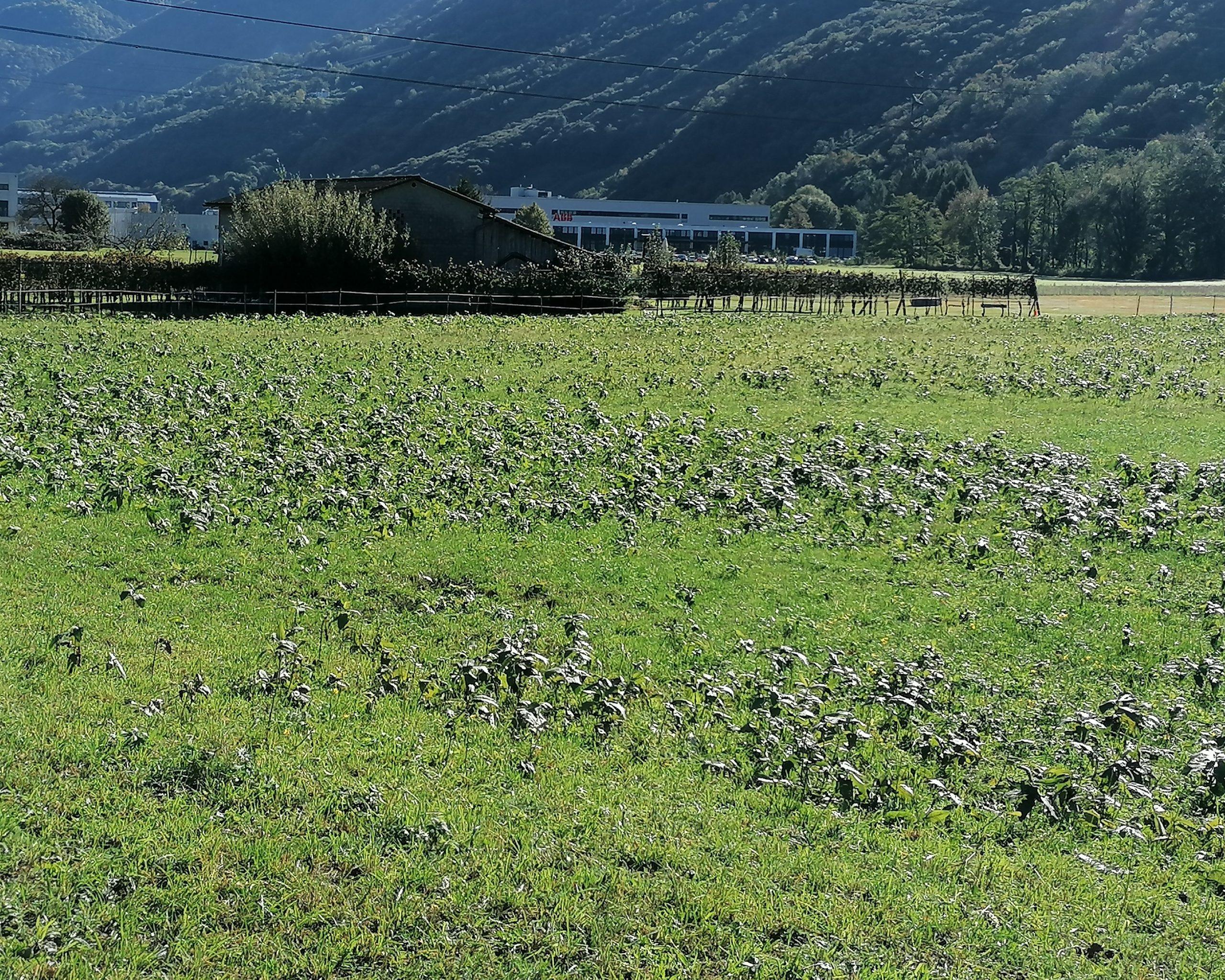 La specie rappresenta una minaccia anche per i prati estensivi e le superfici per la promozione della biodiversità (figura 6) perché è molto competitiva nei confronti delle specie indigene. Nel corso degli anni può formare popolamenti densi e chiusi. Anche per la gestione comunale rappresenta una sfida, in quanto può insediarsi lungo i bordi delle strade e della ferrovia, dove può svilupparsi inosservata per poi diffondersi negli ambiti agricoli o naturali circostanti.