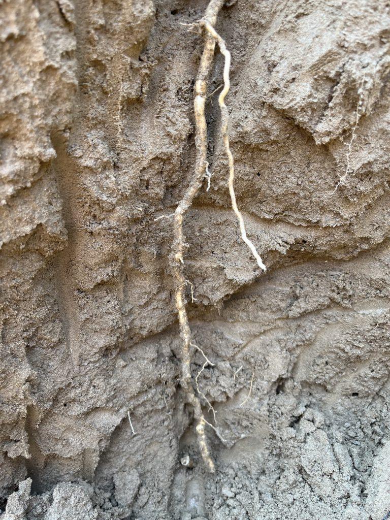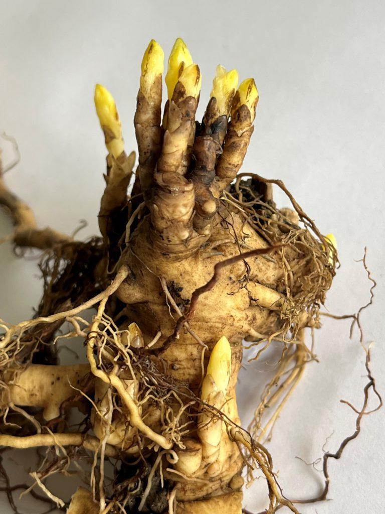 In inverno la parte aerea dissecca e la pianta sopravvive grazie all’apparato radicale ramificato e profondo (figura 4a,b), che spesso si estende su molti metri quadrati. Questo apparato radicale (le cosiddette “radici striscianti”) immagazzina sostanze nutritive e ha numerose gemme dormienti (figura 4c) in grado di produrre nuovi ricacci, in particolare a seguito di sfalci o lavorazioni meccaniche del suolo. I primi giovani germogli compaiono tipicamente in maggio e sviluppano rapidamente in alti steli.