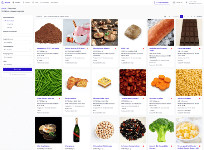 Das Unternehmen Circunis hat eine digitale B2B-Plattform entwickelt, die Produzenten, Grosshändler und Gastronomiebetriebe miteinander verbindet, um überschüssige oder nicht normgerechte Lebensmittel weiterzugeben. Auf diese Weise werden Produkte, die sonst im Abfall landen würden, sinnvoll weiterverwertet.